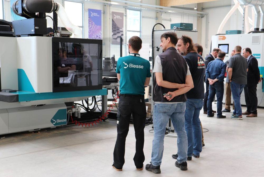 Das fachkundige Publikum ergriff die Gelegenheit und informierte sich im vollausgestatteten Showroom am deutschen Hauptsitz ausgiebig über zukunftsweisende Maschinen und Anlagen im Verbund mit innovativer Software. Neben den zahlreichen Technologien für die Holzbearbeitung zeigte Biesse innovative Demos im Bereich Kunststoff und Metallbearbeitung. Im Vordergrund stand für alle Beteiligten der intensive Austausch mit den Fachbesuchern, die sich auch vor Ort mit den Biesse-Spezialisten der Bereiche Customer Care und Ersatzteilmanagement beraten lassen konnten.