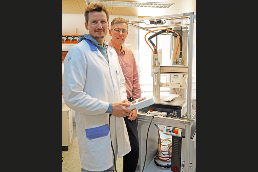 Eine solche Plasmaanlage steht seit Kurzem auch in der Forschung & Entwicklung von Adler. Damit können nun sämtliche Produkte für die industrielle Beschichtung von Kunststoffen, Metallen und Glas unter Praxisbedingungen getestet werden. „Wir haben in den vergangenen Jahren hochwertige Beschichtungslösungen etwa für Kunststofffenster, Dekorfolien oder Möbelkanten entwickelt. Die neue Laboranlage ermöglicht es uns, diese Beschichtungen unter denselben Bedingungen wie bei unseren Kunden anzuwenden und verschiedene Anlagenparameter nachzustellen“, freuen sich Dr. Albert Rössler (Geschäftsleiter F&E) und Dr. Simon Leimgruber (Leiter Entwicklungsgruppe Fenster- und Bautenlacke Industrie) über den Zuwachs im Anlagenpark der Adler-Forschungsabteilung.